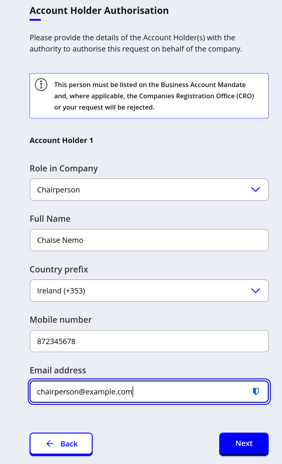 Enter in the details of the folks on the mandate.
